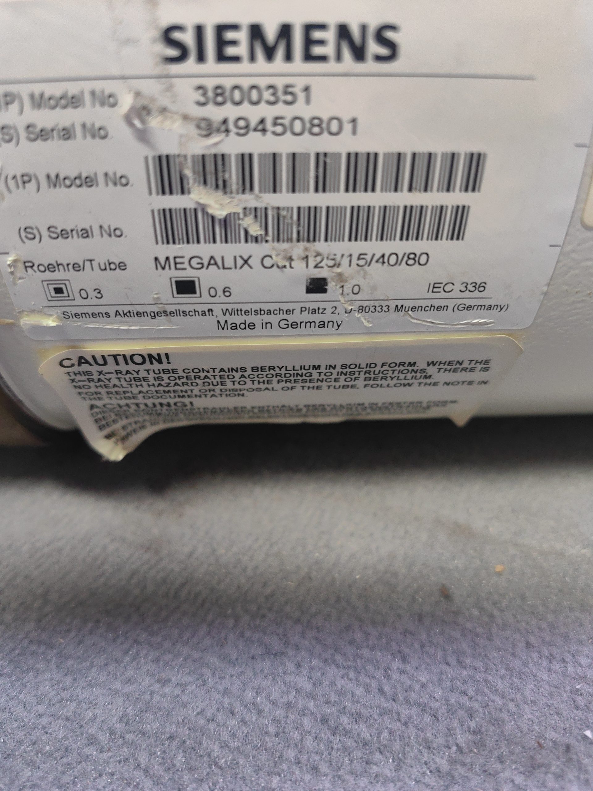 - 1× SIEMENS Megalix CAT 125/16/40/80 122 GW Röntgenröhre